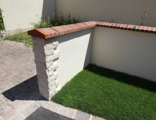 Un avant/après d'une rénovation d'un mur en enduit avec des pierres en éclaté calcaire et couronneme ...